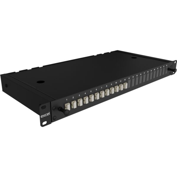 Paleta povezovalnih plošč SC Excel je ohišje v slogu pladnja z drsnimi predali, ki je primerno za neposredno zaključevanje ali spajanje do 24 vlaken v 1U prostora v omari. Vsaka plošča je izdelana iz črne ABS plastike UL94-V0 in kovinskega nosilnega okvirja, ki zagotavlja močno in vzdržljivo enoto.