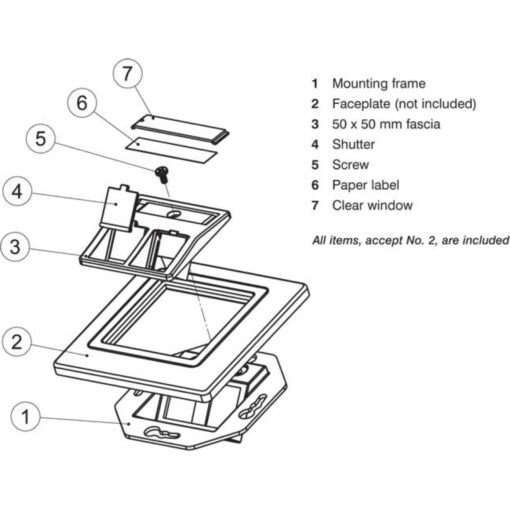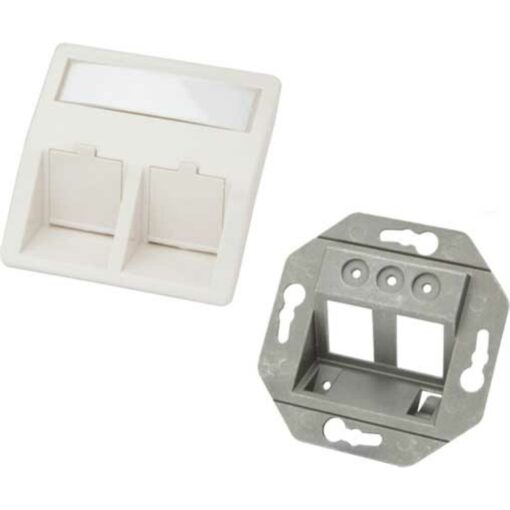 Prednja plošča Excel Angled 2 Port Keystone 50 x 50 mm je sestavljena iz sprednje plošče in montažnega okvirja v različnih barvah.
