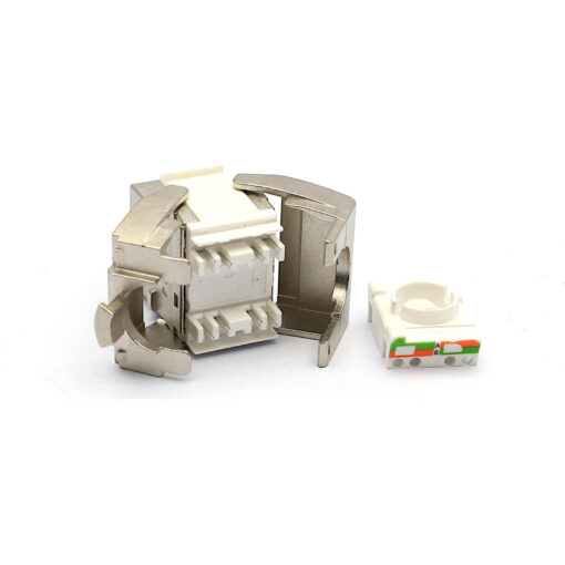 100-209-24 Excel Cat6 FTP Screened Keystone Jack Toolless Silver Box 24, na voljo kot del naše ponudbe excel Cat6 keystone priključkov za omrežne povezave RJ45. Zaključna vtičnica RJ45 brez orodja, primerna za montažo v različna ohišja, od povezovalnih plošč, prednjih plošč in loput do podtalnih doz in razdelilnih ohišij. Vtičnica je izdelana v visokokakovostnem ohišju iz cinkove tlačne litine, s priključnimi točkami IDC brez orodja v obliki metulja.