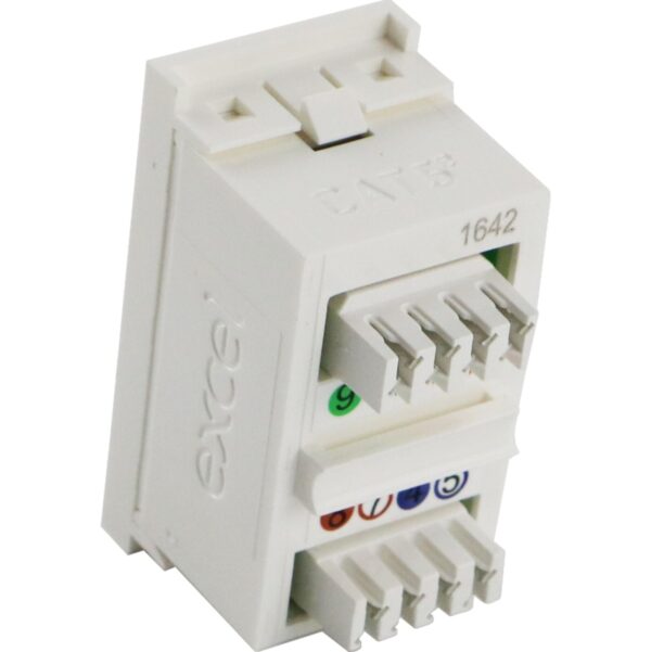 Moduli Excel kategorije 5e RJ45 so skladni s standardom EIA/TIA za izboljšano kategorijo 5. Vsak modul z zapirali je opremljen s poljem za drsno nalepko in prostorom zgoraj, to je dovoljeno za uporabo samolepilnega ali dodatnega označevanja, če je potrebno.