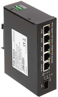 4 x RJ45 10/100/1000 Base-T + Hi-PoE (802.3af/at/bt), 1 x RJ45 10/100/1000 Base-T – Uplink + vhod napajanja : Hi-PoE (802.3af/at/bt), 1 x SFP 1000 Base-X – Uplink |